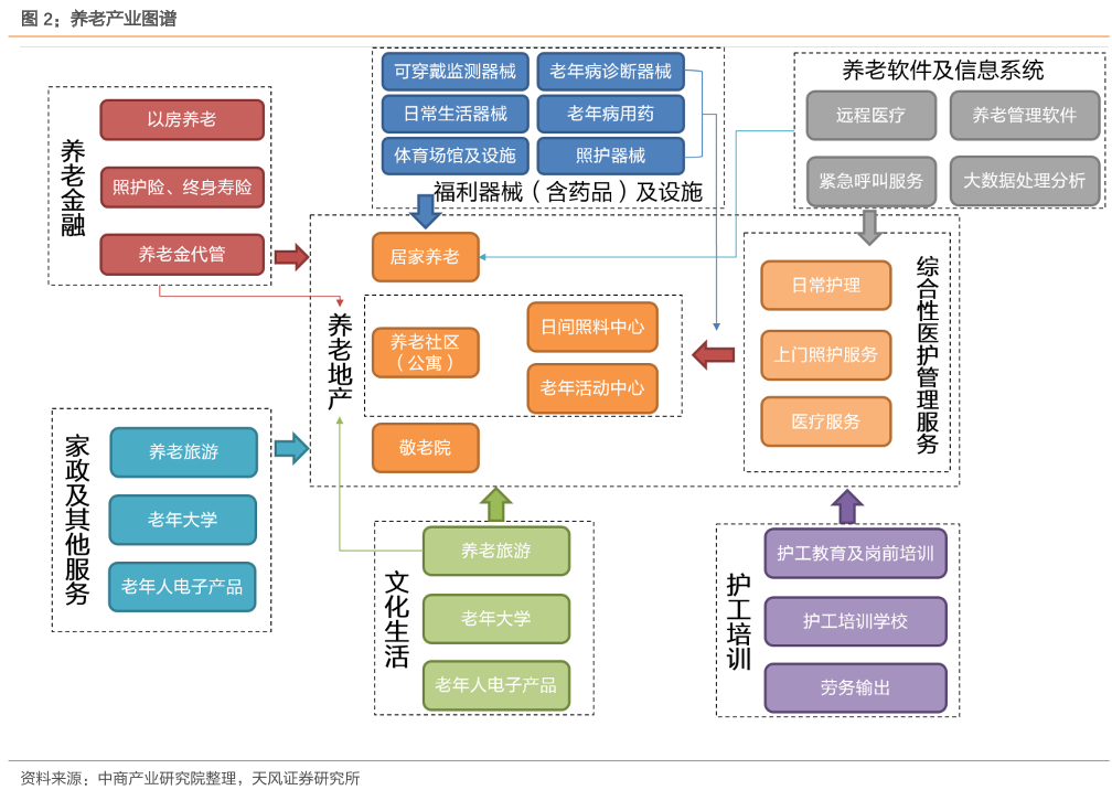所以面对这批强劲的潜在消费者,养老产业预计未来能够多面开花。涉及的环节众多,从养老服务社会保险、社区养老、居家养老到养老服务信息化、养老医疗器材的需求都不会少。