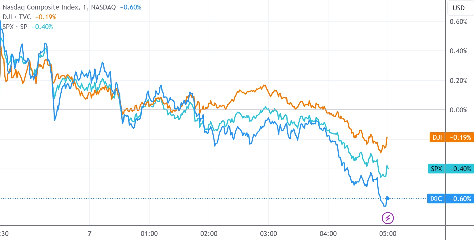 隔夜美股:三大指数集体收跌 中概股表现整体好于大盘