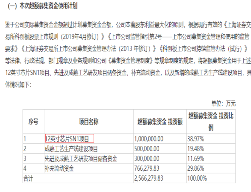 在公布业绩报告的同时,中芯国际还公告首次公开发行股票超额募集资金256.6亿元,将用于12英寸芯片SN1项目、成熟工艺生产线建设项目、先进及成熟工艺研发项目储备资金以及补充流动资金。在芯片产业界人士看来,28纳米是先进制程与成熟制程的技术分水岭。目前,内地仅中芯国际一家具备28纳米及以下的制造能力,已量产的最新技术为14纳米。