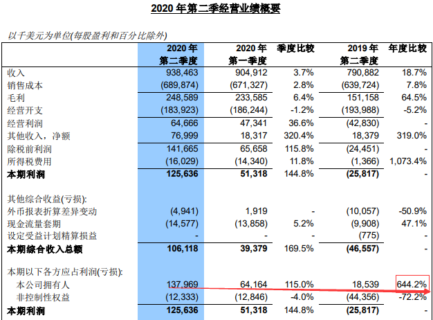 8月6日,中芯国际公布2020年第二季度财报,公司营收和净利润均创单季历史新高,二季度销售额为9.385亿美元,相比去年同期增长了18.7%。实现净利润1.38亿美元,同比增长644.2%。