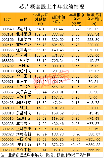 那么芯片股上半年整体业绩如何?证券时报·数据宝统计显示,目前共有24只芯片概念股发布半年报业绩数据,其中14股上半年业绩有望同比增长,占比约58%。净利润增幅最高的是博创科技,受新产品逐步导入并形成规模销售的影响,公司第二季度毛利率较第一季度有所提升,预计上半年净利润为0.22亿元至0.3亿元,同比增长261%至392.3%。