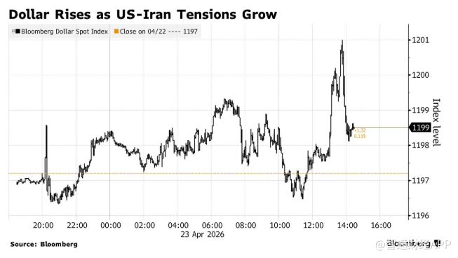 能源行情火热之际,外汇市场同步波动。受中东冲突加剧、避险情绪抬头影响,美元连续第三天走强。周四彭博美元现货指数一度上涨0.3%,创下4月 13日以来新高,后续涨幅小幅收窄。十国集团(G10)所有货币兑美元均下跌,其中新西兰元跌幅居前。