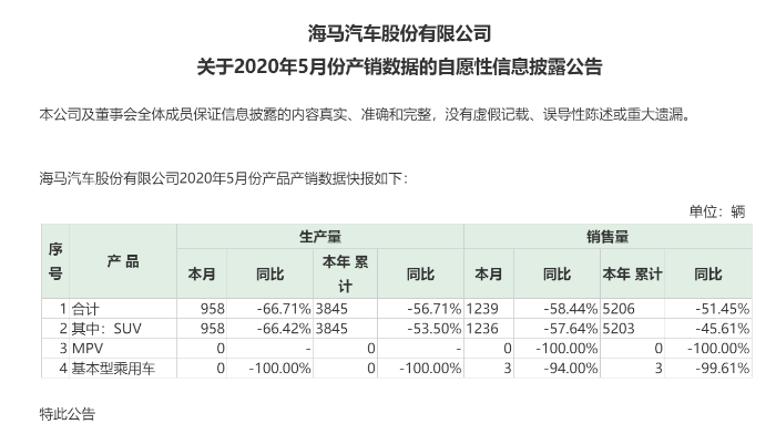 与此同此,产量也大幅下滑,今年海马汽车只生产了3845辆SUV,MPV和基本型乘用车的产量是0.