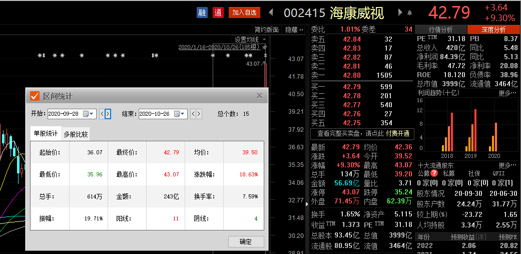 而从中细看海康威视近期的走势就会发现,在过去仅一个月的十几个交易日中,股价就斩获将近20%的涨幅。