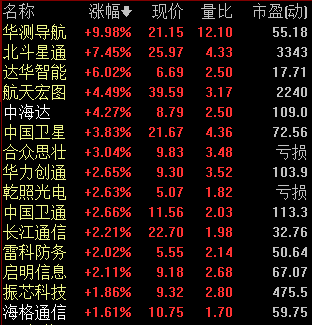 盘面上,卫星导航板块早盘异动拉升,华测导航涨停,达华智能涨超5%,航天宏图、北斗星通涨逾4%,华力创通等跟随上涨。