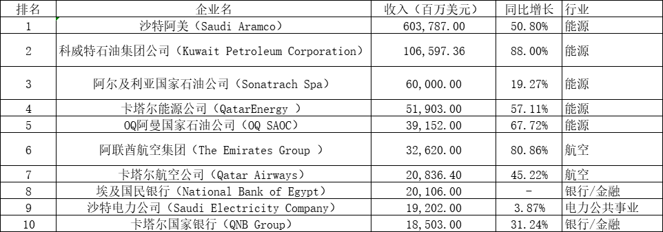 阿拉伯500强企业榜单出炉 沙特阿美等能源企业占据前五