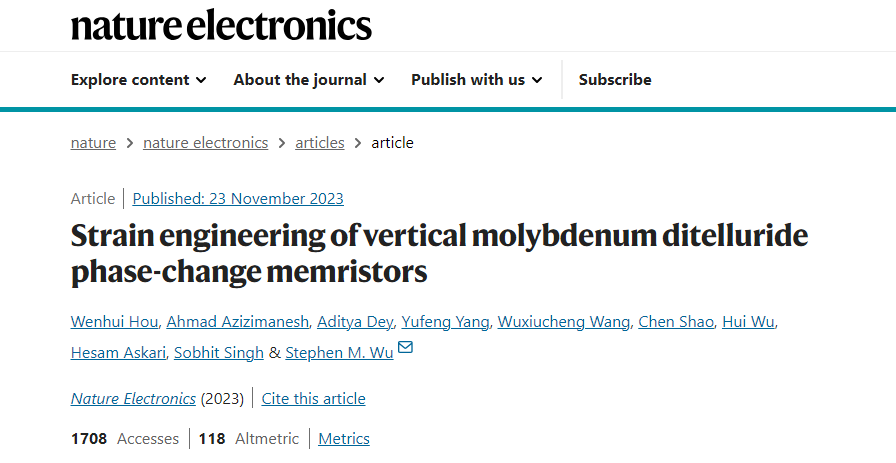最新研究结果已于近期发表在了《自然电子》杂志上。