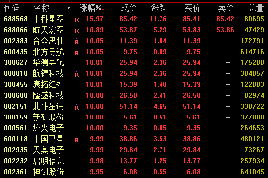 卫星导航概念3日盘中发力拉升,截至发稿,中科星图大涨约16%,航天宏图涨约11%,合众思壮、北方导航、华测导航、北斗星通、新研股份、中国卫星、天奥电子等涨停。