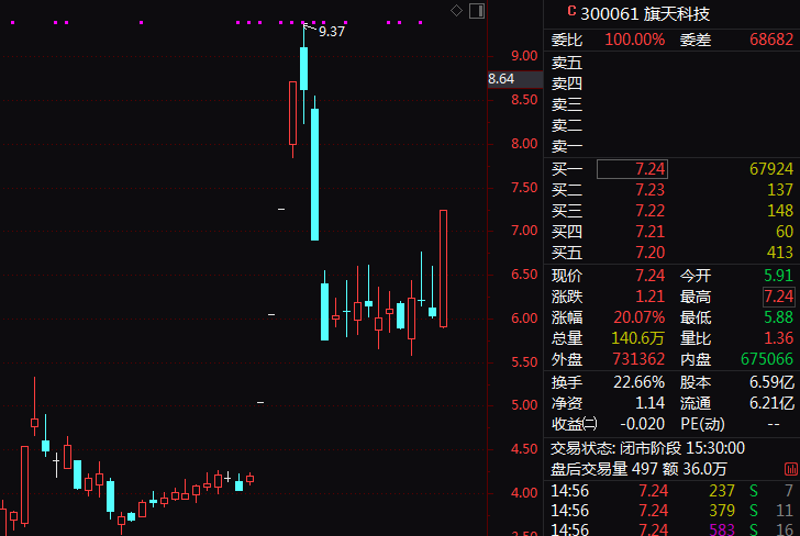 8月20日黑神话悟空概念股午后继续拉升,旗天科技20cm涨停,华谊兄弟涨超19%,中信出版、浙版传媒、新迅达、国旅联合涨停,致尚科技盘中涨近15%、利亚德涨超11%。