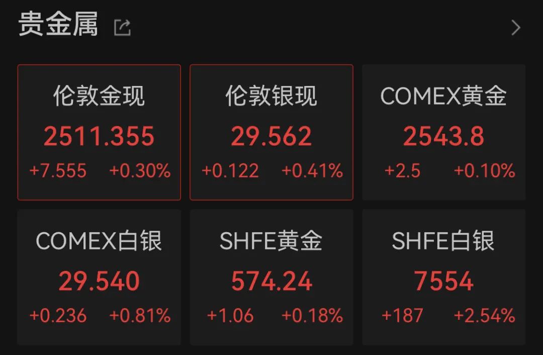 此外,现货黄金站上2510美元/盎司,再创新高。