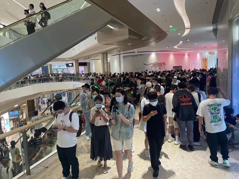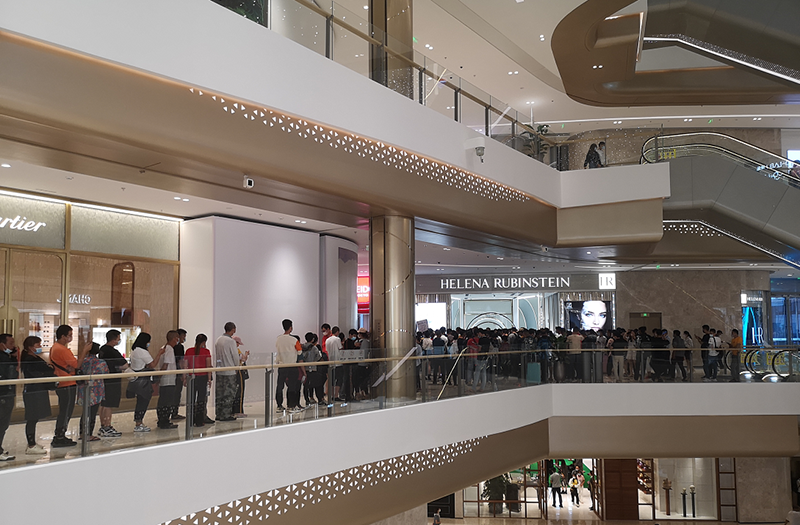 不少游客及市民前往海口国际免税城购物消费,打卡拍照,部分店铺门口甚至排起了长队