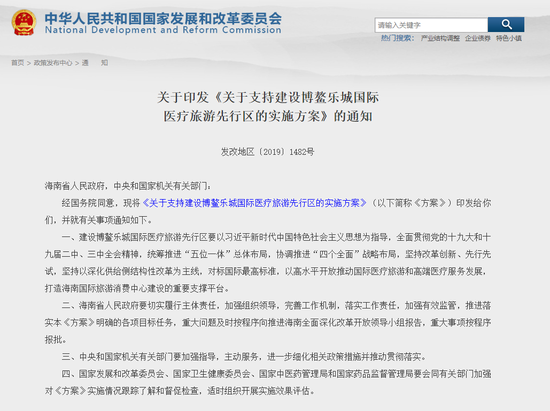 9月16日,发改委印发《关于支持建设博鳌乐城国际医疗旅游先行区的实施方案》。
