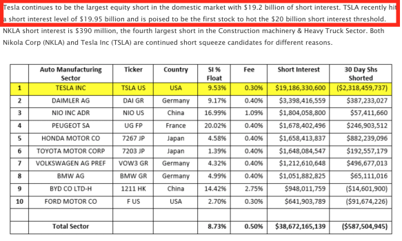 据S3 Partners7月9日披露的数据,特斯拉目前是美股被做空程度最高的个股,其做空头寸达到199.5亿美元的水平。该股有望成为有史以来第一只空仓头寸突破200亿美元的股票。