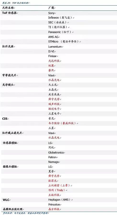 国盛证券电子团队日前发布研报,通过对已经上市的主流3D摄像头产品进行拆解分析。其中,3D摄像头产业链可以被分为: