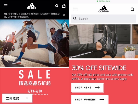 为了尽快清理库存,从3月8日妇女节购物季至今,阿迪达斯连续推出了多个大规模的折扣优惠活动,囊括线上线下。