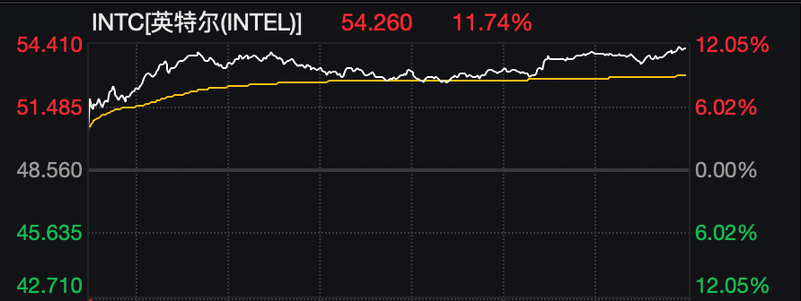 大型科技股多数收涨,英特尔涨超11%,AMD涨超7%,特斯拉、英伟达涨近3%,谷歌涨近2%,高通涨超1%,苹果、亚马逊小幅上涨。