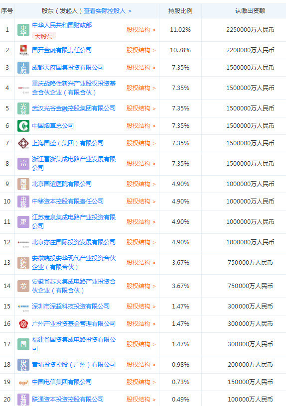 国家集成电路产业投资基金二期股份有限公司(简称“国家大基金二期”)已于2019年10月22日注册成立,注册资本为2041.5亿元,共27位股东,均为企业法人类型。