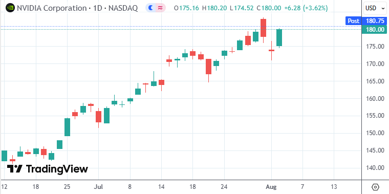 英伟达收涨3.62%报每股180美元,刷新了上周三的收盘纪录。