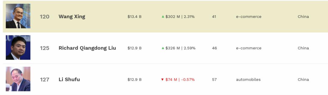 而在全球,王兴排名富豪榜120位,刘强东125位,雷军134位。中国富豪榜单前三的分别为马化腾(503亿美元),马云(435亿美元)、黄峥(403亿美元),全球富豪榜单分别排名21位、22位、26位