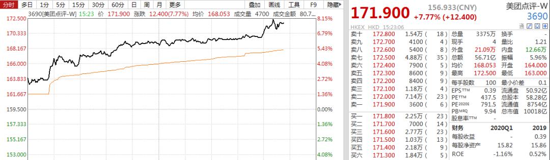 对于美团暴涨,有分析师向证券时报记者表示,一是公司一季度无论是营收还是净利润都远超市场预期,二是疫情之下,美团业务迅速恢复,验证了美团在面对重大不确定性因素的抗压性,三是账户里有数百亿的现金流,为期后续的业务扩张提供了保障,四是,全球进入负利率时代,更多的资金为避免全球大放水带来的货币贬值,加速入场优质核心资产。