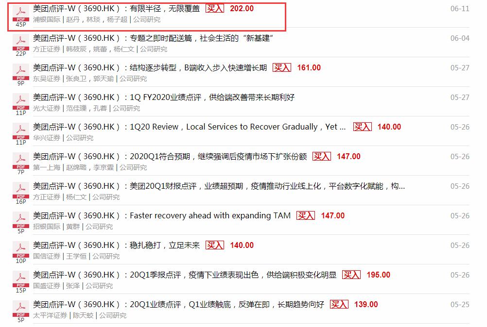 记者翻阅分析师研报发现,给予美团最高估值的为浦银国际,认为股价能够达到202港元。目前,美团股价已经突破了大多数分析师给予的价格预测,券商则不断更新其目标价。比如国信证券此前认为美团合理估值为140港元左右,招银国际认为美团合理估值在147港元附近。