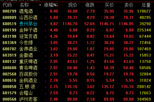 白酒白块震荡拉升 贵州茅台大涨近5%逼近历史高点