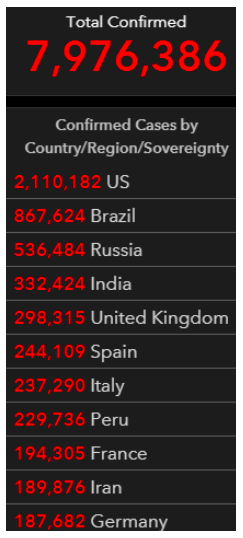 美国约翰霍普金斯大学实时数据显示,截至当前,全球新冠肺炎累计确诊797.6万例。其中,美国累计确诊超211万例,死亡11.6万例,巴西累计确诊超86.7万例,死亡4.3万例,俄罗斯累计确诊超53.6万例。当地时间15日,美国电影艺术与科学学院宣布,考虑到新冠疫情的影响,2021年的第93届奥斯卡颁奖典礼将推迟至4月25日举行,较2月28日的原计划推迟了约8周的时间。