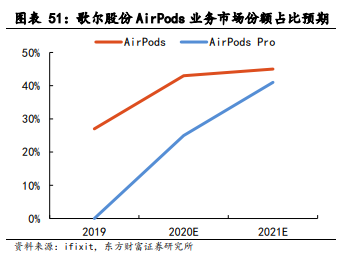 机构预计歌尔股份在AirPods市场的份额还会不断攀升,到2021年有望超过40%。再加上在新款AirPods Pro耳机上的占比,歌尔股份可谓是占尽了先机。