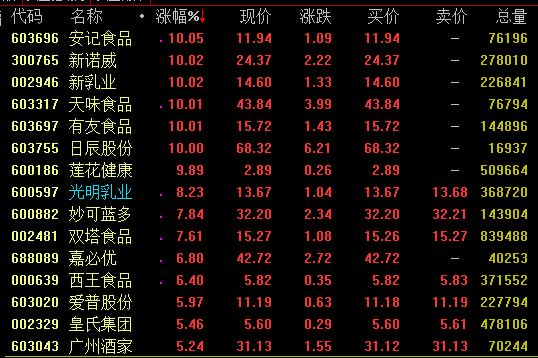 延续强势,食品饮料板块13日盘中再度走强,截至收盘,安记食品、新乳业、天味食品、有友食品、日辰股份、莲花健康等涨停,妙可蓝多、双塔食品涨幅超7%,嘉必优、西王食品涨幅超6%。