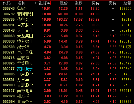 网红经济概念今日盘中表现亮眼,截至收盘,御家汇、壹网壹创、值得买、中宠股份、天舟文化等涨停,天龙集团涨逾7%。拉芳家化涨近6%。