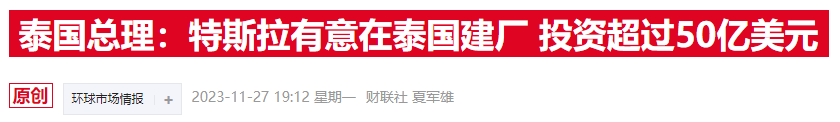 两个月前,泰国总理透露特斯拉已有意在泰建立一家工厂,准备投资超过50亿美元。Vasinonta强调,泰政府正在发力吸引电动汽车制造商来当地建立生产基地,“庞大的锂资源将有助于提高政府邀请整机厂落地的成功率。”