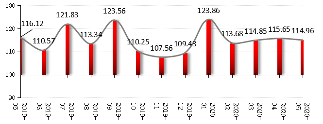 相较于对美股的谨慎,国内私募A股信心指数却并没有因为疫情或者外围市场扰动而出现变化。私募排排网最新公布的数据显示,2020年5月融智·中国对冲基金经理A股信心指数为114.96,虽然相较4月信心指数环比下降0.6%,但是从今年新冠肺炎疫情全面爆发以来,基金经理信心已经逐步回升,目前趋于平稳。
