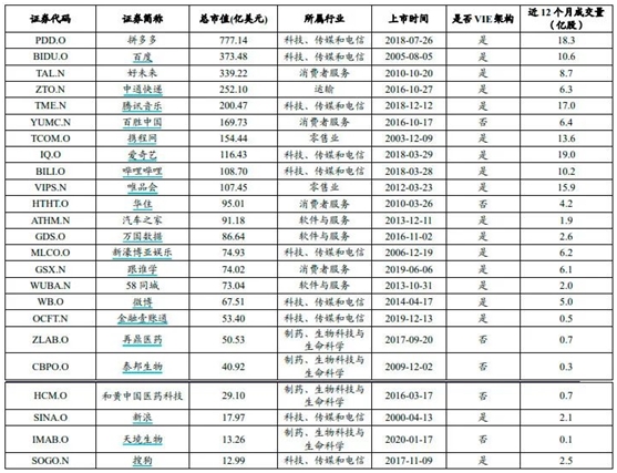 从行业分布来看,TMT行业占比接近70%,是中概股最主要构成。港交所对中概股回归较一般上市规则不设更严苛条件。相较而言,一批市值大、在原交易所成交活跃以及新经济属性的公司,是有潜力回归的中概股。