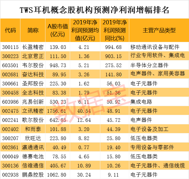 4只TWS耳机概念股年度业绩有望翻倍