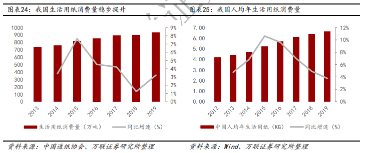 而根据中国造纸协会生活用纸专业委员会,2018年我国生活用纸消费量为 889.6万吨。2010-2018 年复合增长率达到7.9%,所以预计到2020年我国生活用纸消费量将达到980万吨。