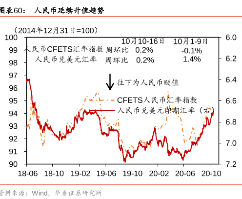 今年人民币汇率持续上涨,第三季度美元兑人民币平均汇率约为6.92,人民币升值幅度同比达到1%,环比达到2.3%。