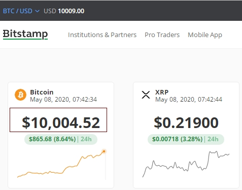 交易平台Bitstamp报价显示,比特币突破10000美元大关,为2月24日以来首次。自3月13日最低探底至3850美元以来,比特币这轮上涨累计涨幅已达160%。