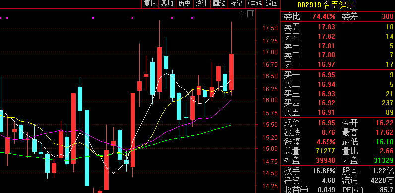 受此影响,名臣健康早盘放量直线飙升,盘中一度上涨近9%,开盘1小时成交量就高达1.03亿元,超过昨日全天的成交量。Wind数据显示,早盘有489万元的主力资金净流入名臣健康。