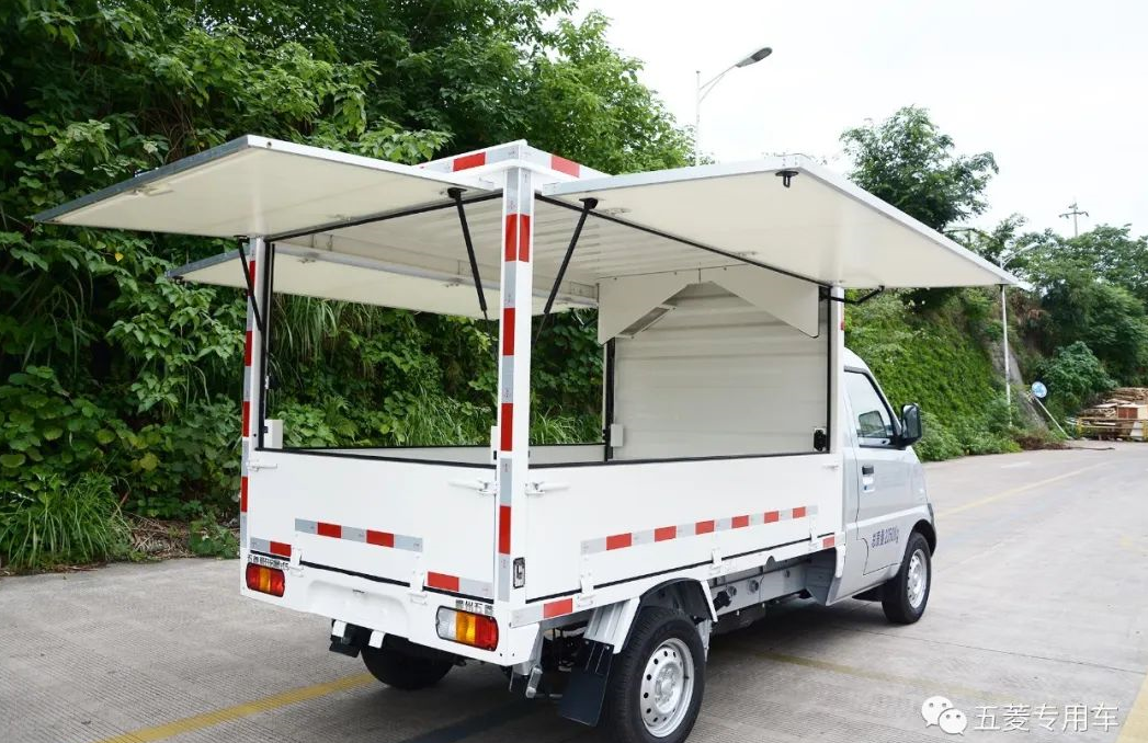 无独有偶,被称为“神车”的五菱荣光推出翼开启售货车,打开车厢即可卖货。