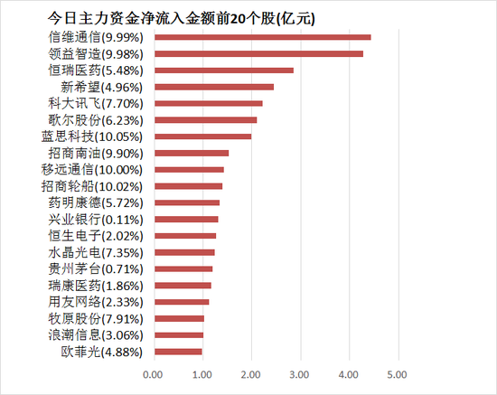 5、信维通信主力资金净流入4.44亿元居首