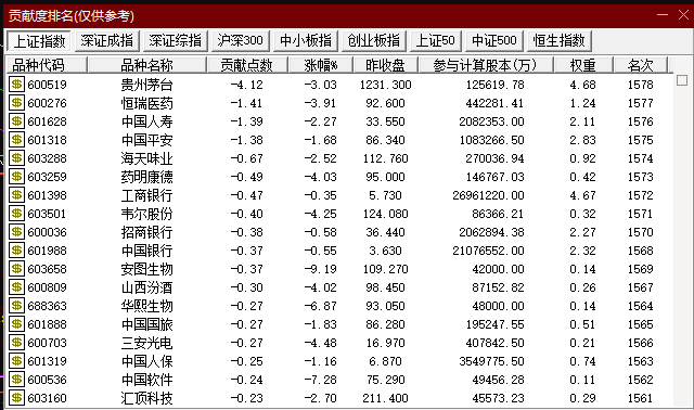 其次,从杀跌的贡献度来看,基金重仓股贡献很大,来看上证指: