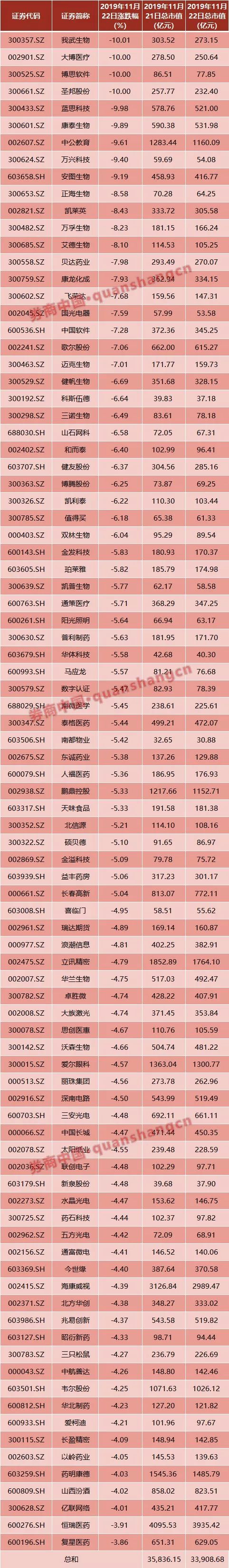 11月22日,早盘向好的股市遭遇突袭,多只高位白马股突然集中出现卖盘,好好的多头气氛被扰乱,市场持续杀跌。截至当日收盘,沪深股指全线下挫,其中创业板跌幅惨重。