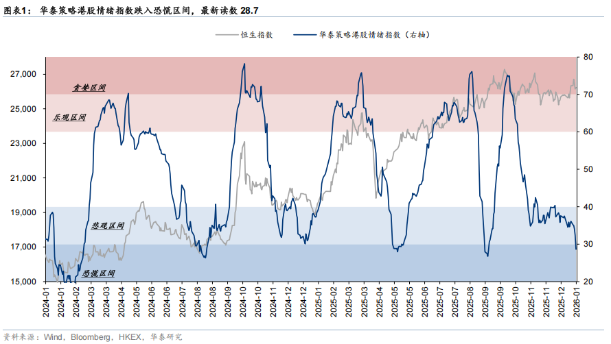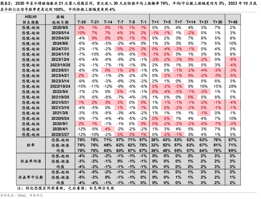 近期港股三大指数表现平平,但是部分机构指出,港股情绪指数上周五正式落入恐慌区间。历史上进入该区间后未来1月上涨概率大幅提升。