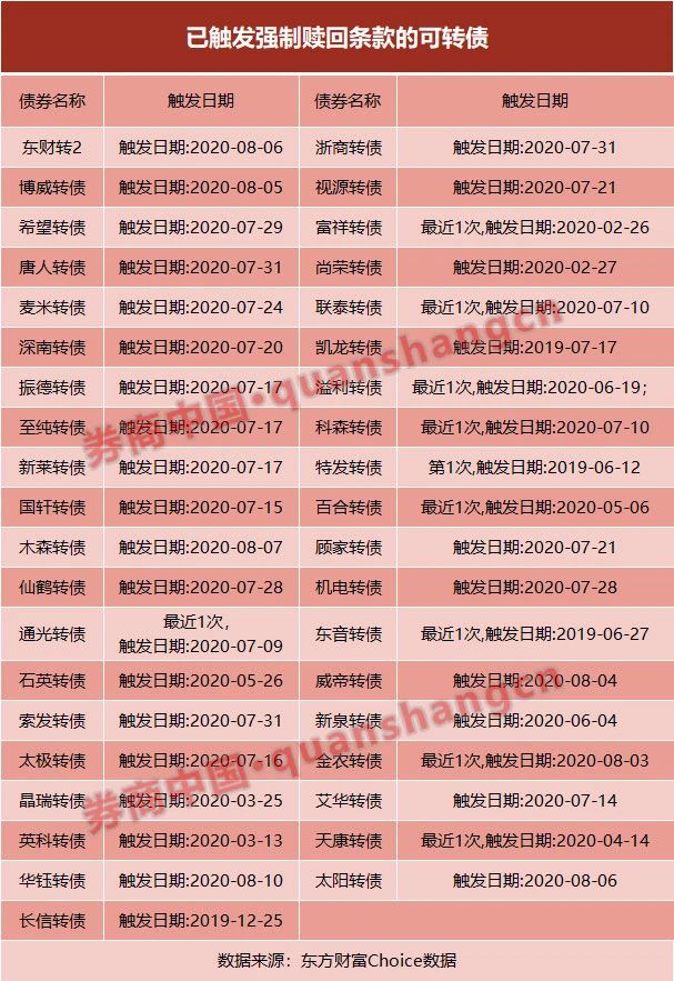 根据东方财富Choice数据统计,已有39只转债触发“强制赎回”条件。