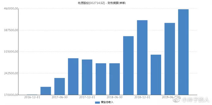 值得注意的是,牧原股份在2019年上半年依旧处于亏损状态,上半年归属净利润为-1.56亿元,同比大跌97.95%。仅仅一个季度,牧原股份便实现了扭亏为盈。