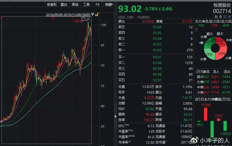 5年来,公司的市值上涨了30多倍,截止目前牧原股份的总市值为2129亿元,秦英林占股40.85%,实际上当前秦英林的身家已经高达869亿。