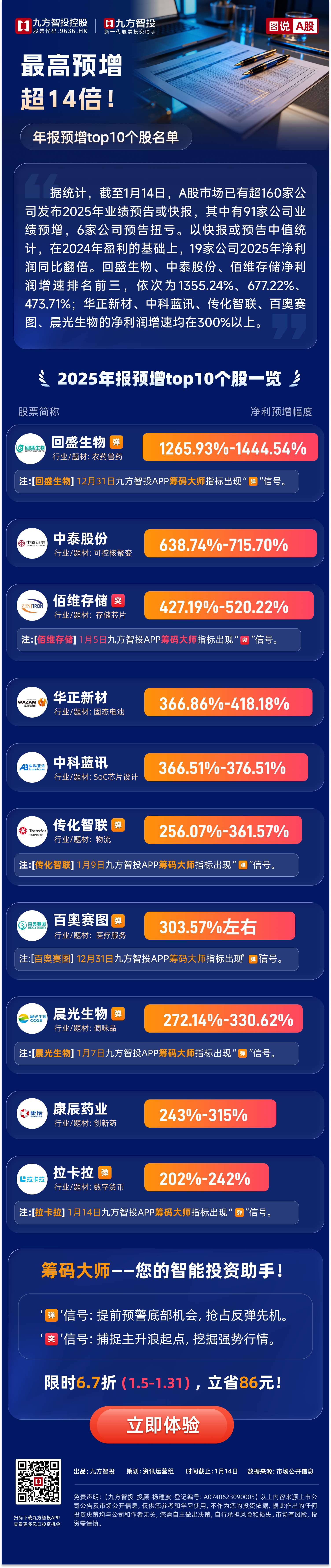 最高预增超14倍!一图看懂年报预增top10个股名单