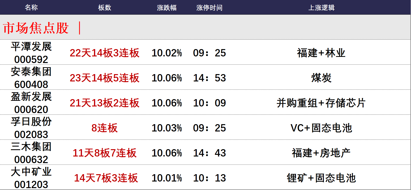 虽然合富中国停牌核查,但个股行情依旧火热,平潭发展一字涨停走出22天14板,孚日股份晋级8连板拓展连板高度,安泰集团上演“准天地天板”录得23天14板。“好名字”炒作如火如荼,人民同泰、胜利股份、华夏幸福、日出东方等个股连板晋级。