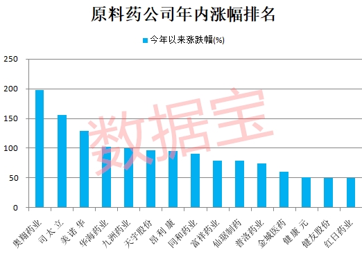 近期大盘走势不温不火,而原料药类公司却能逆流而上,股价走势丝毫不逊于网红经济等大热题材。最具代表性的奥翔药业年内涨幅已达到197.38%,不含次新股在内,其已跻身年内涨幅榜前五位。