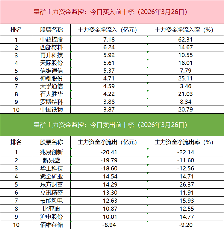 龙虎榜方面,商业航天人气股西部材料强势涨停,获两家游资(国泰海通证券武汉紫阳东路、银河证券绍兴营业部)合计买入1.92亿,同时一家量化资金(开源证券西安太华路)买入0.93亿。明阳智能今日触及跌停,遭四家机构大幅卖出12.18亿。